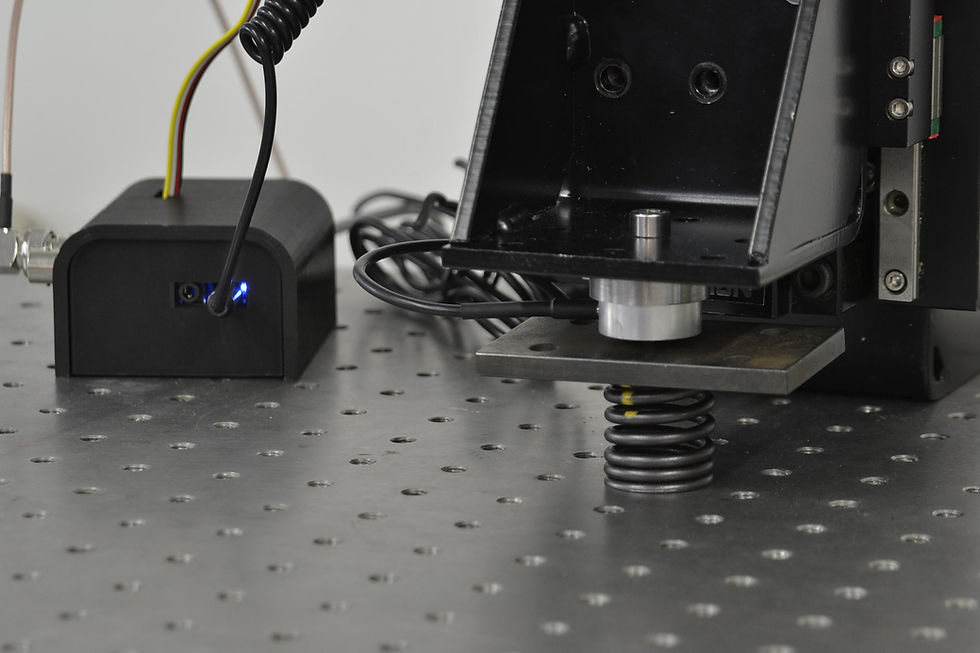 Par exemple, pour étudier la compression de différentes mousses avec capteur de force 5kg, la platine de translation peut être fixée perpendiculairement à la table optique grâce à 2 équerres de montage.